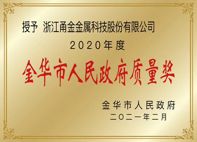 Jinhua Municipal People's Government Quality Award